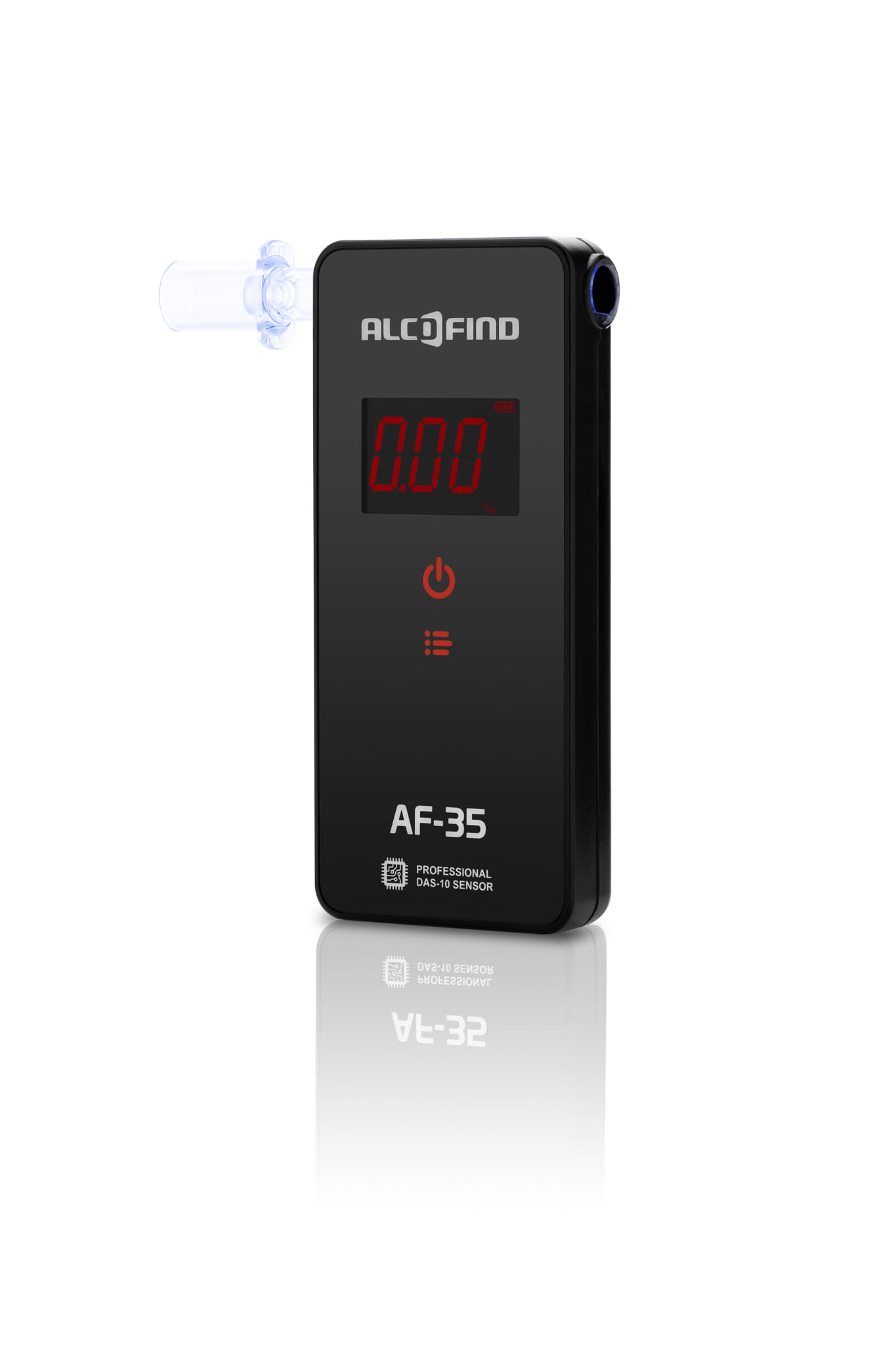 AF-35 to sprzęt o ergonomicznej budowie, który doskonale mieści się w kieszeni i nie zajmuje dużo miejsca. Posiada 4-cyfrowy wyświetlacz LCD z podświetleniem, co ułatwia korzystanie z niego nawet w trudnych warunkach oświetleniowych. Obsługa odbywa się za pomocą jednego przycisku, co czyni cały proces bardzo prostym. Urządzenie zapamiętuje dziesięć ostatnich pomiarów i prowadzi ich licznik, co pomaga w ocenie regularności korzystania oraz przypomina o konieczności kalibracji. Alkomat wykonano z odpornego na uszkodzenia tworzywa ABS, a ustniki montuje się szybko i wygodnie – to duży atut.